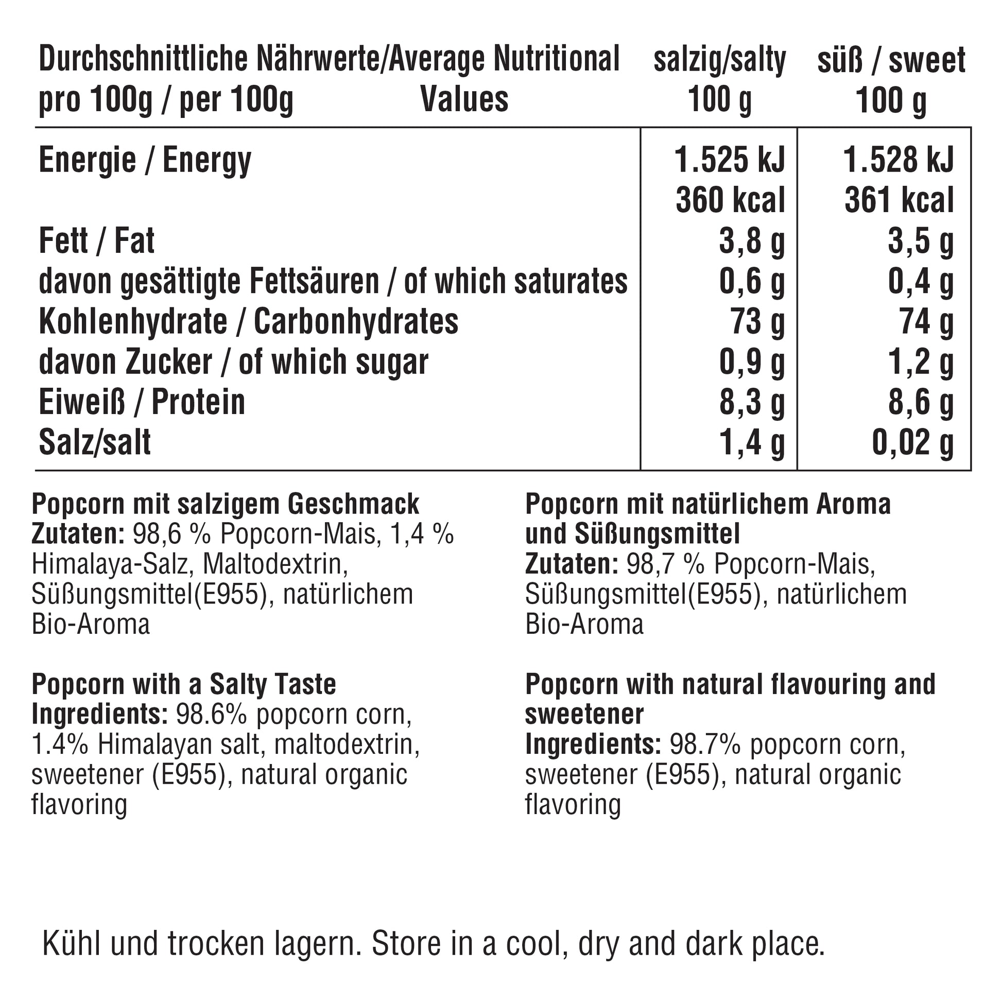 2x 500g popcorn (11.90 € / 1 kg) incl. 7% VAT, free shipping.