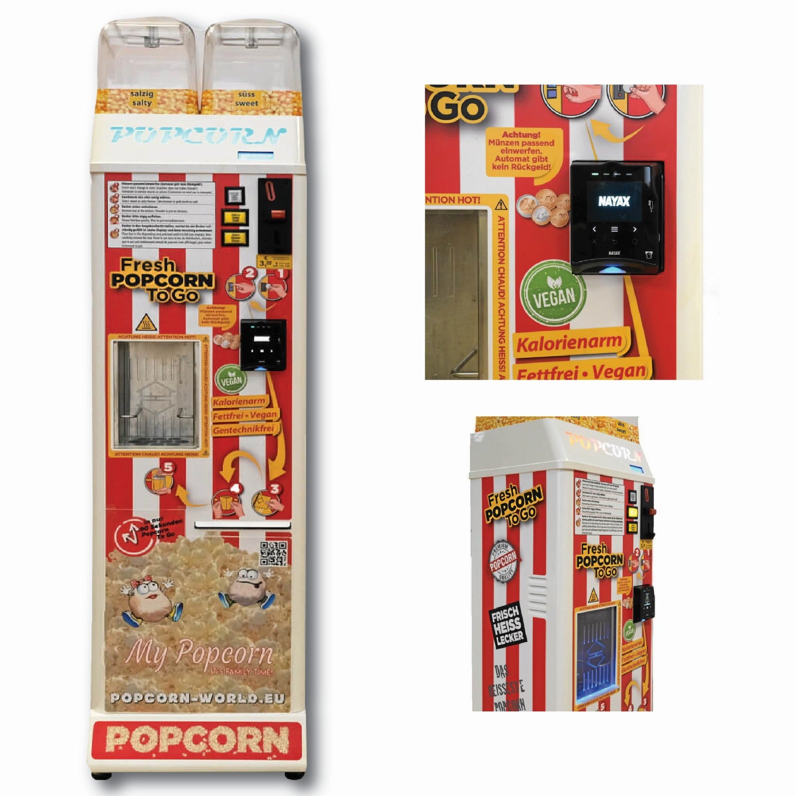 Sweet or salty, fresh popcorn of your choice. Ideal for all high-traffic locations, such as swimming pools, kiosks, hotels, arcades, cinemas, hardware stores, shopping malls, gas stations, etc.