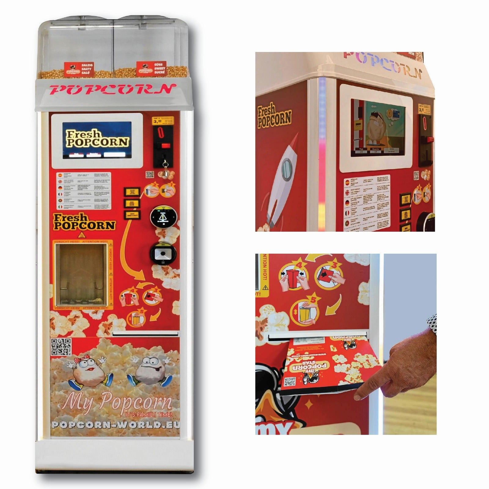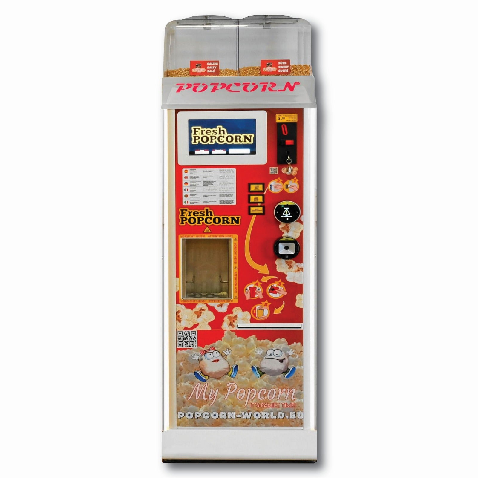 MyPopcorn Star - für 2 Sorten Popcorn + Mix (Mod. 140 EU) aus Edelstahl, Inklusive Halbmond Bildschirm, Nayax Onyx & DOT (QR Scanner) & Telemetrie-Kit- Auf Anfrage